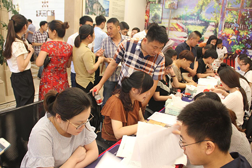 這邊湖州剛拿新地,那邊樂清又接喜事。上午9時,華都·天元廣場重磅開盤,共計推出192套房源,戶型面積段140-178㎡,屬高端地標豪宅。開盤采用先認購先選房的方式,由于前期蓄客充足,吸引了幾百組客戶爭相搶房,短短3個小時便去化九成。
